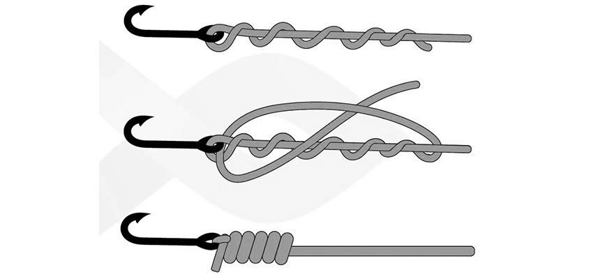 Для спиннинговых приманок подойдут узлы для крючка, которые не обвязываются вокруг цевья: