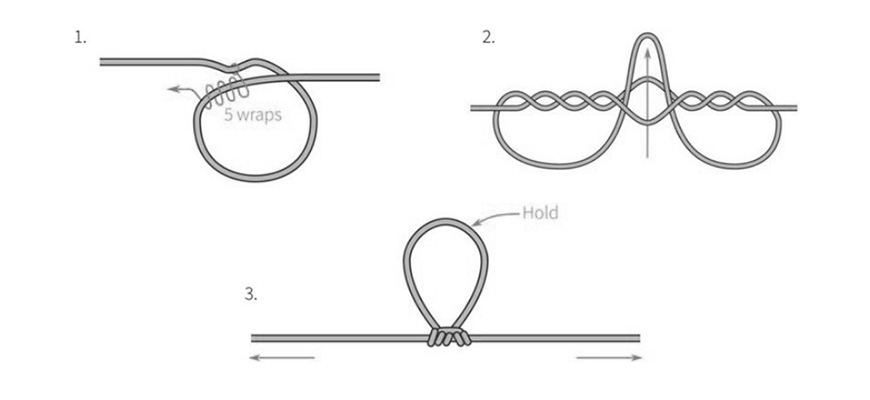 В его основе лежит создание нескольких петелек на леске, чтобы закрепить дополнительные крючки. Достаточно простой и быстрый метод.