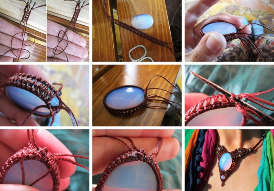 Нередко для ожерелий используются полудрагоценные камни. Смотрятся такие украшения стильно, оригинально и дорого, так что их будет даже не стыдно подарить кому-нибудь. Для оплетки камня: