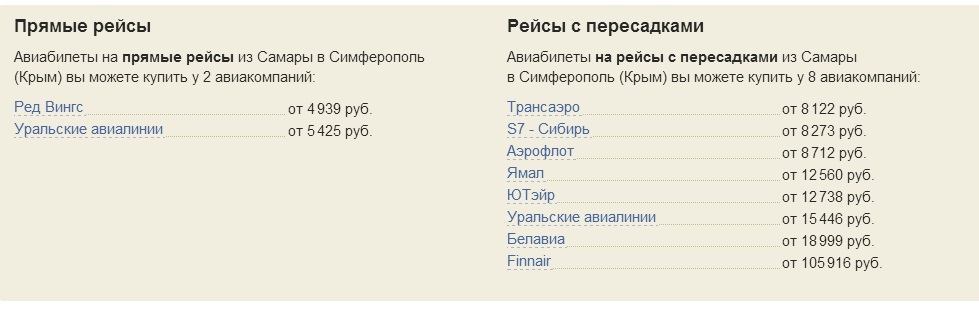 Без пересадок из Самары в Симферополь можно долететь только с «Уральскими авиалиниями». Самая долгая и тяжелая поездка получится с «Аэрофлотом».