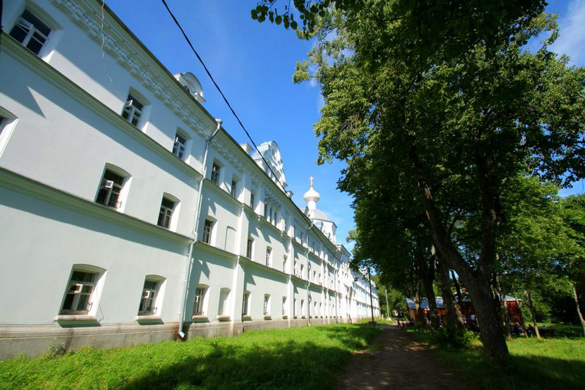 Рухольня и кельи духовника на фоне собора Спаса Преображения