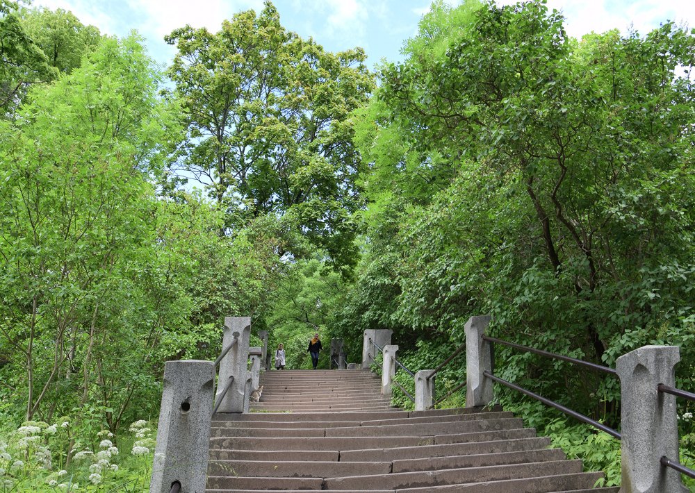 Гранитная лестница с изображениями вдоль стен русских святых ведет в Верхний храм Преображения Господня. Светлый, просторный и торжественный зал вмещает 3000 человек. На храм, сооруженный в 1896 году в русском стиле, пошло 3,5 миллиона кирпичей, которые готовили на острове из местной глины. Стены и иконостас расписывали монахи из Валаамской школы живописи.