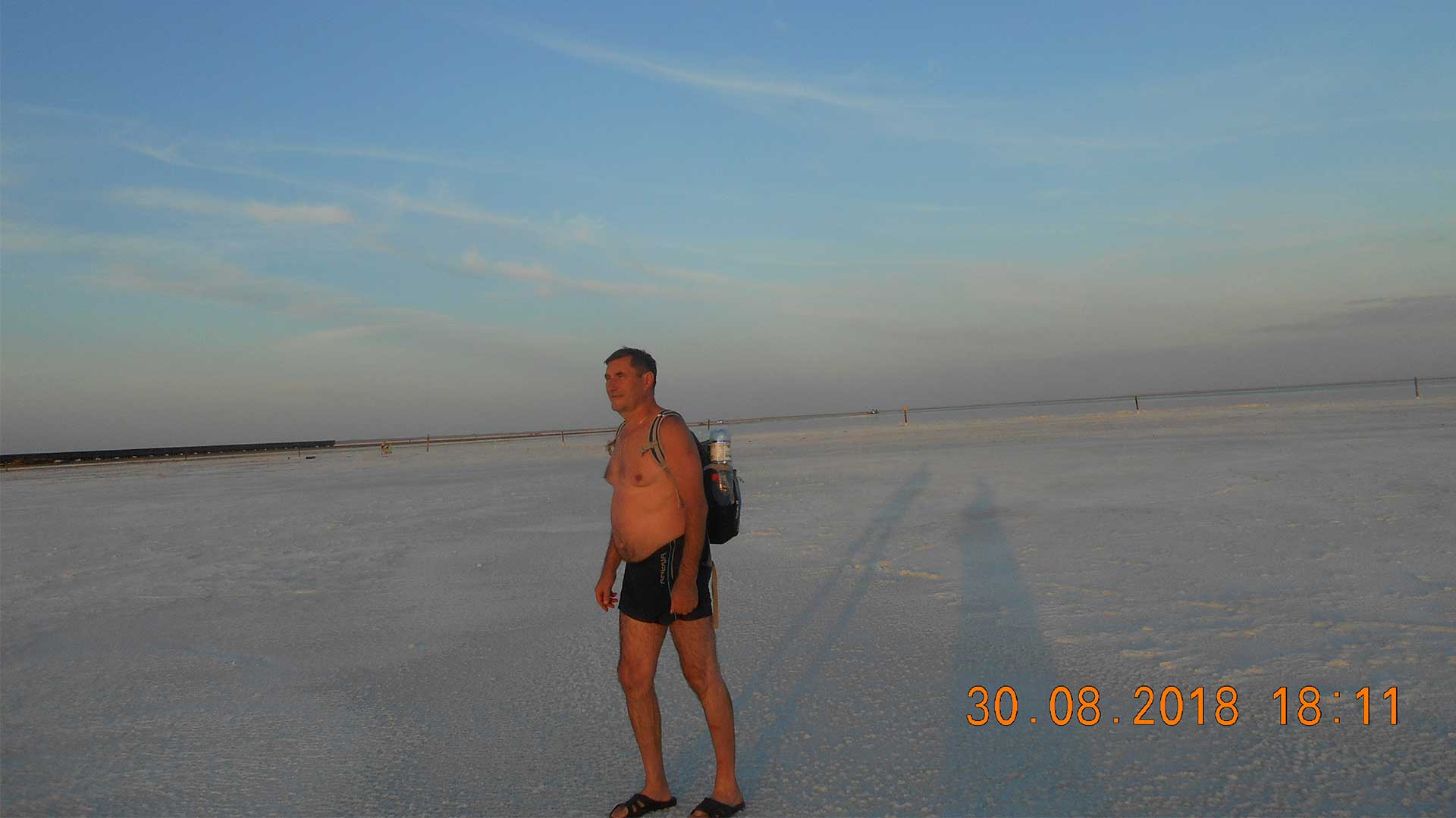 Мы машинами не пользовались и ходили исключительно пешком. Это и полезно, и эффектно – вокруг всё белое, сплошная соль. Ближе к берегу на поверхности уже появляются наносы со степи.