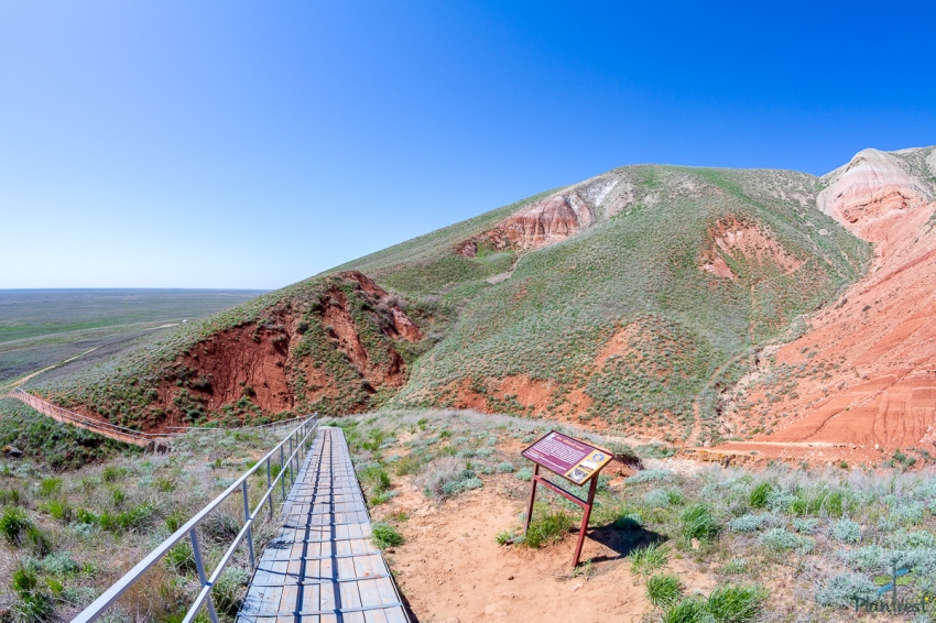 Поражают какие-то инопланетные виды с красным Марсианским грунтом. С горы открывается красивый вид на озеро. Гора постоянно растет на 1 мм в год. Непонятно, как она образовалась посреди степи, есть местные легенды на этот счет. Буддисты считают это место священным, сюда приезжает много паломников.