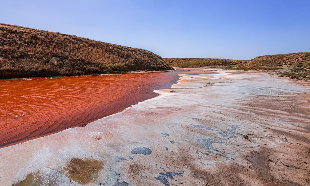 Единственная река, впадающая в Баскунчак, летом пересыхает, образуя в русле несколько небольших озер и приобретая необычный малиновый цвет соли: благодаря яркому окрасу одноклеточных водорослей и микроскопических организмов.