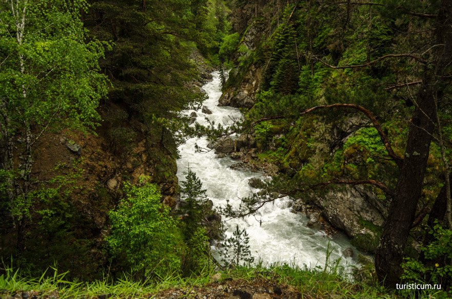 До Клухорского перевала протяженность всего ущелья составляет 30 километров, но для туристов открыты только 15 километров пути — от начала ущелья до пограничного шлагбаума у реки Кичи-Муруджу. Дальше закрытая пограничная зона.