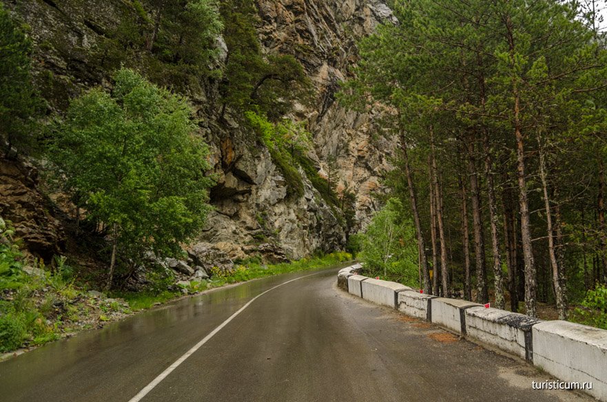 Дорога тянется вдоль правого берега сначала реки Гоначхир, до места слияния рек Бу-Ульген и Клухор, а дальше по правому берегу реки Клухор. Скалистые горы, нависающие над дорогой слева и пенящаяся река глубоко внизу справа, а между ними тоненькая ниточка черного асфальта.