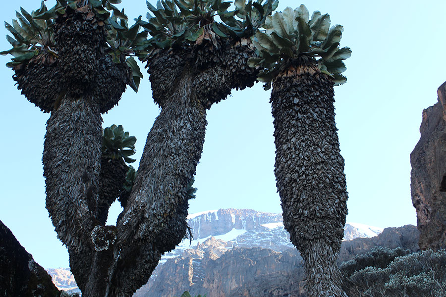 Кстати, именно на высоте около 4000 метров и только на Килиманджаро растет очень красивое и необычное растение дендросенеция. Оно мягкое, и птички вьют из него гнезда на высоте.