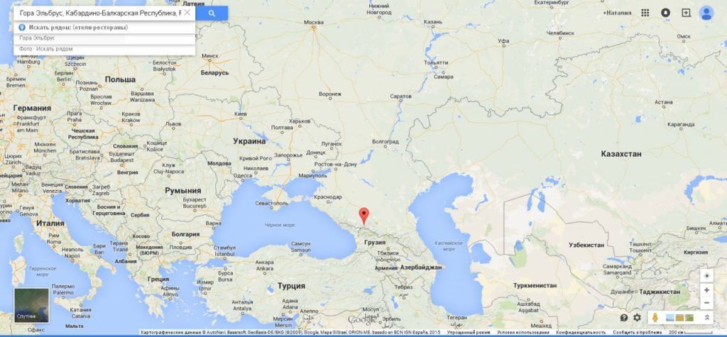 Если определять на карте географические координаты, то местоположение следующее — Эльбрус, Кабардино-Балкарская Республика, Россия, долгота 42° 38.3978’ 0″, широта 43° 15.2298’ 0″.