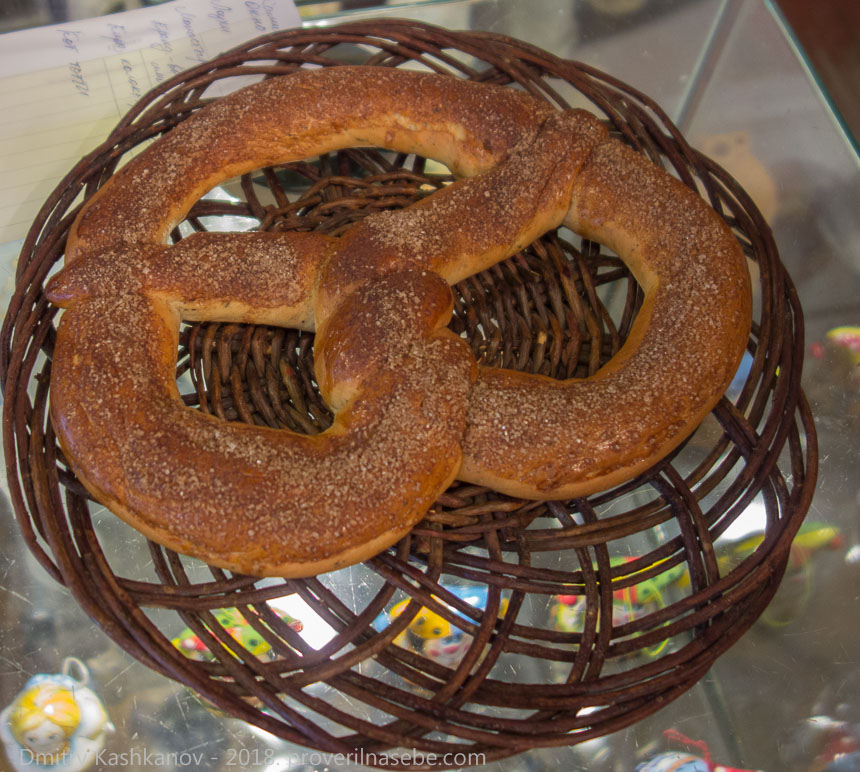 Более того, среди туристов чуть было не начались современные крендельные войны, когда выяснилось, что булочных изделий хватит не на всех. Но одна из сотрудниц спасла ситуацию. Она быстро куда-то сходила (теперь мы знаем, куда именно) и вернулась с целой охапкой новых кренделей.