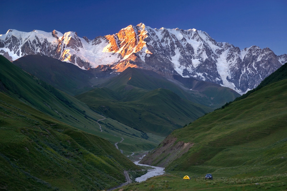 Пятитысячник Грузии и России – горная вершина Шхара. В переводе с грузинского «девять». Это название не было случайностью, ведь Шхара имеет выраженные высшие точки. И, как уже можно догадаться, их 9.