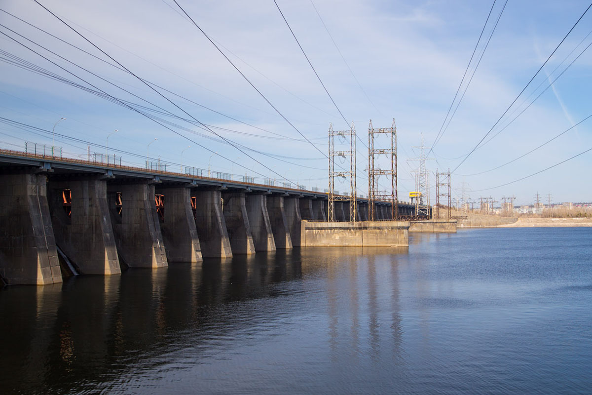 - Жигулевская ГЭС — в длину плотина 980 м, в высоту — 40 м, 19 секций в водосливной части.