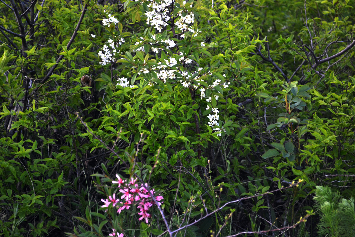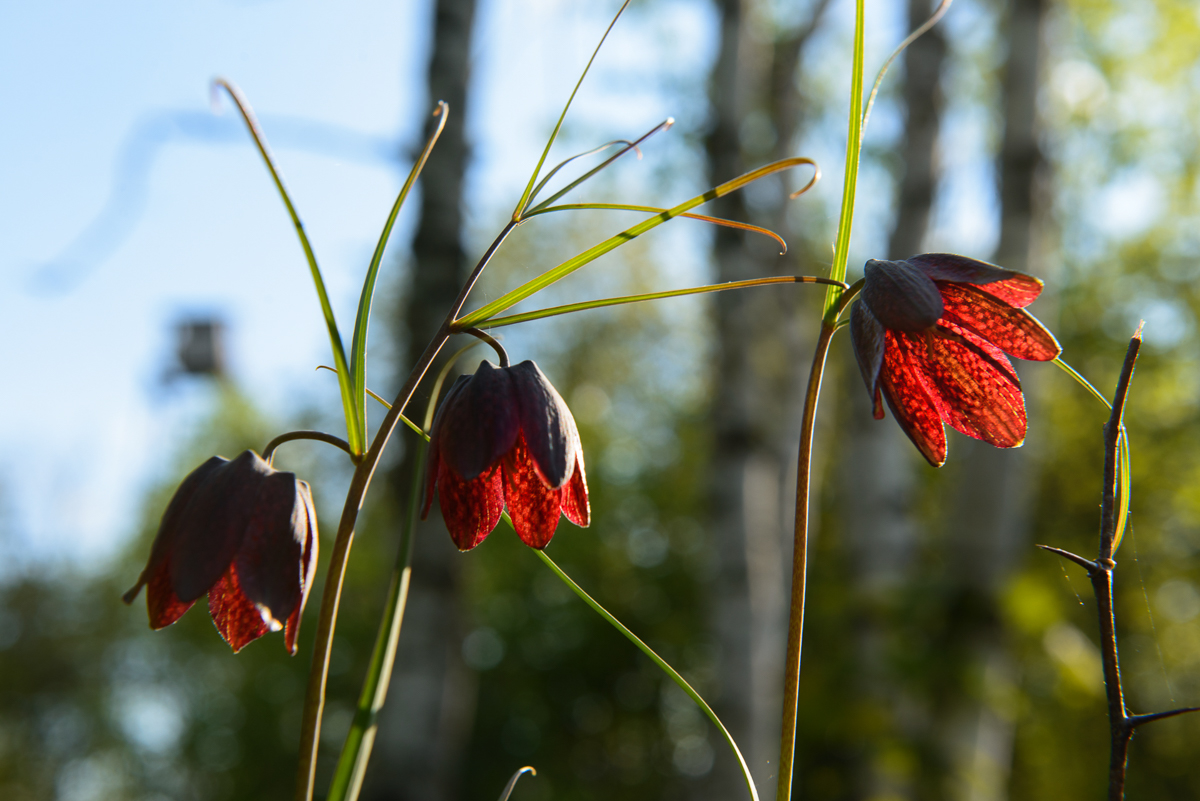 Мы добрались до просторной поляны, где и было решено разбить лагерь. Неподалеку разместилась пожарная вышка, к ней мы сходим позже. А пока — фотографируем цветы.