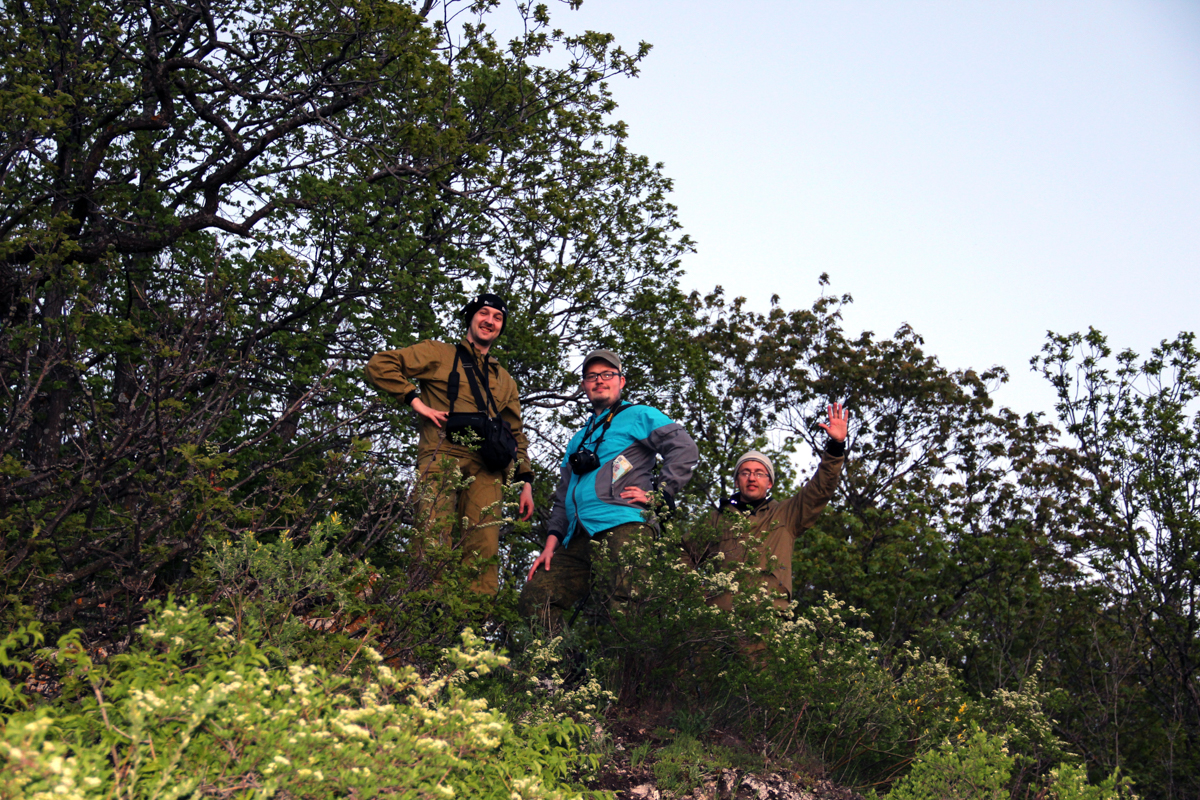 Мы быстро нашли грунтовую дорогу, идущую напрямую к дороге на Жигулевский Артек, и встали у шлагбаума для памятного фото. На фото слева направо: Дмитрий Рузов, Антон Алексеев, Петр Маркеев.